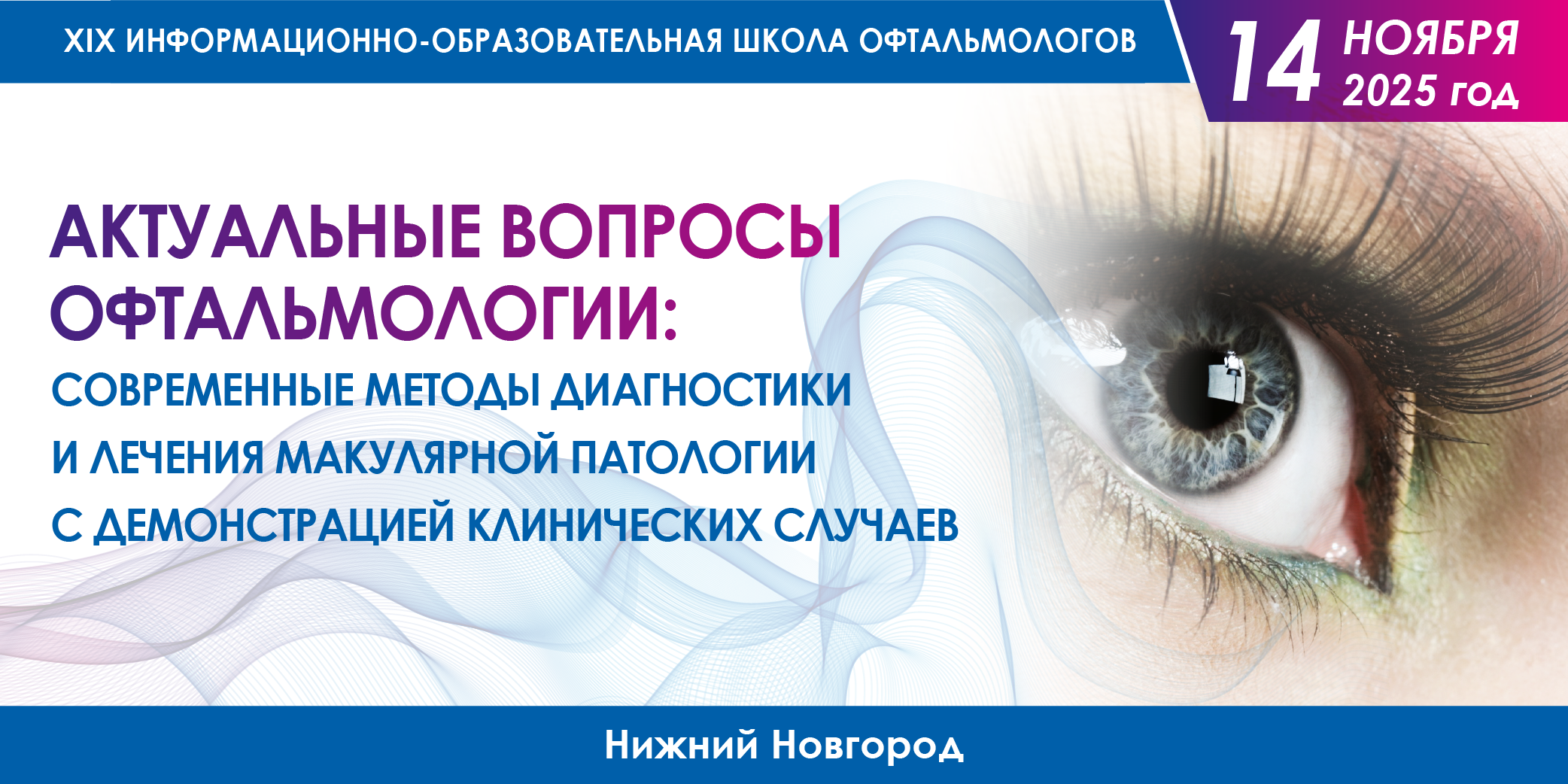 14 ноября 2025 г. при поддержке Министерства здравоохранения Нижегородской области, Нижегородского отделения общества офтальмологов РФ, ГБУЗ НО «Нижегородская областная клиническая больница им. Н.А. Семашко» в г. Н.Новгород состоится XIX Школа офтальмологов ПФО «Актуальные вопросы современной офтальмологии: современные методы диагностики и лечения макулярной патологии с демонстрацией клинических случаев».