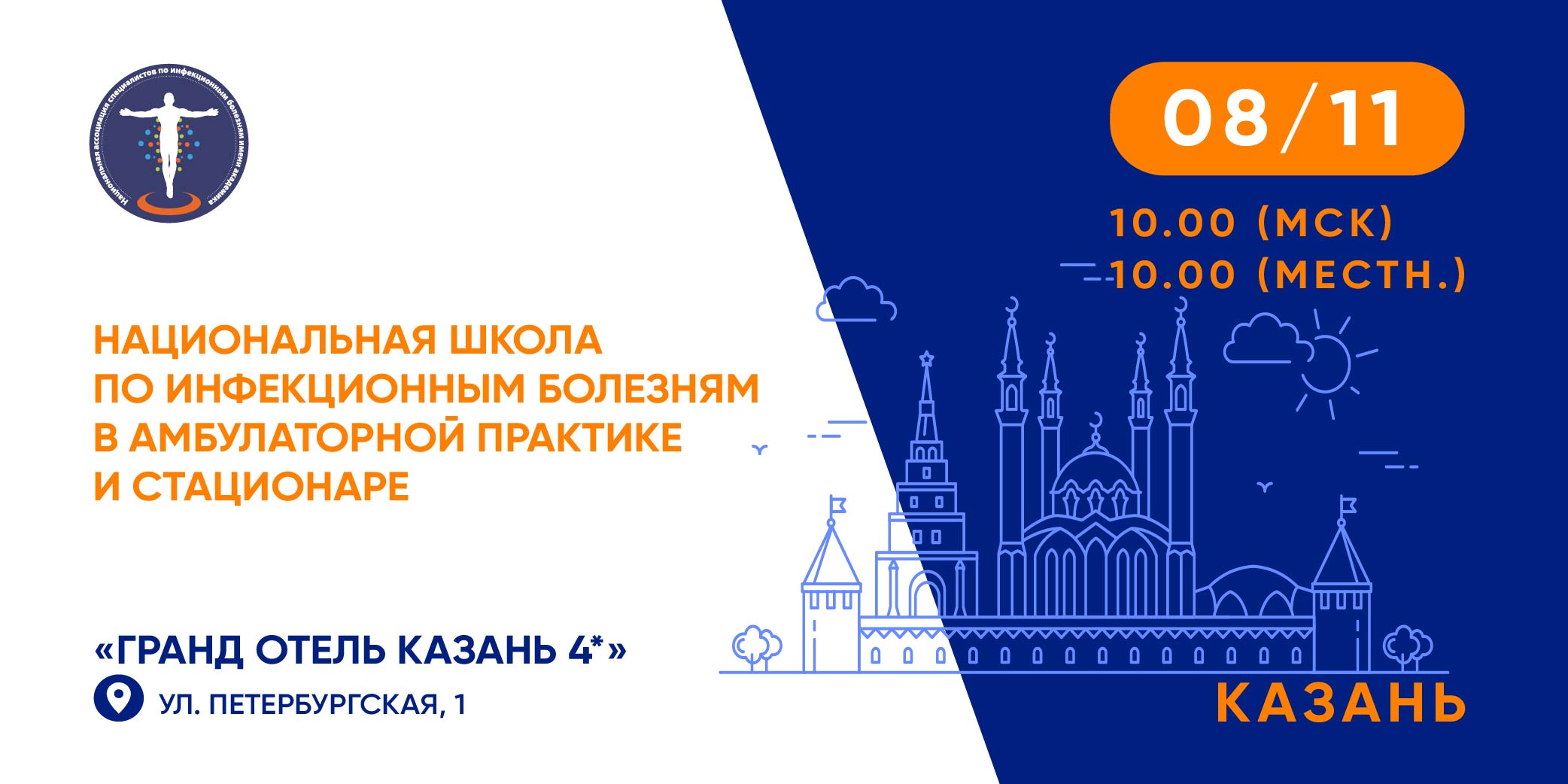 8 ноября в г. Казань состоится конференция в гибридном формате «Национальная школа по инфекционным болезням в амбулаторной практике и стационаре».