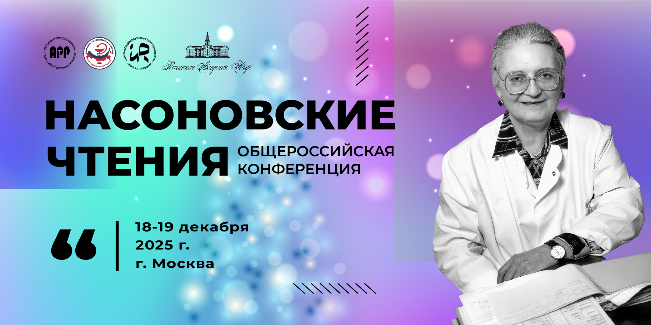 18-19 декабря 2025 года в Москве, состоится одно из крупнейших ежегодных мероприятий Общероссийской общественной организации «Ассоциация ревматологов России» - Общероссийская конференция “Насоновские Чтения”, которая в этом году посвящена современным достижениям в изучении диагностики и передовым подходам к терапии ревматических заболеваний у взрослых и детей, таких как ревматоидный артрит, анкилозирующий спондилит, псориатический артрит, системные заболевания соединительной ткани, ювенильный идиопатический артрит, подагра, остеоартрит и других ревматических заболеваний.